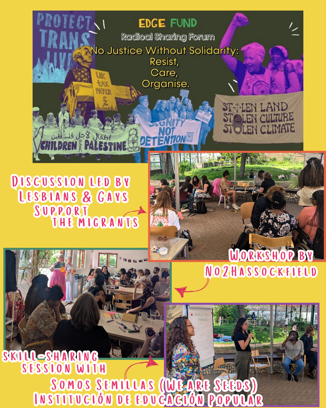 This was the first in-person edition of the event since before the Covid19 pandemics, which made it all the more special and relevant as it gave us the opportunity to make closer connections with the aim of building a network of radical organisations fighting for systemic change.In fact, the RSF stated taking shape a few months back as Edge invited their members (past grantees) to join a Working Group to design the day according to their interests and needs. We were thrilled having 12 radical organisers representing 5 in our working group:Somos Semillas (We are Seeds), No2Hassockfield, Lesbians and Gays Support the Migrants, World Stages Now and Dares Collective.