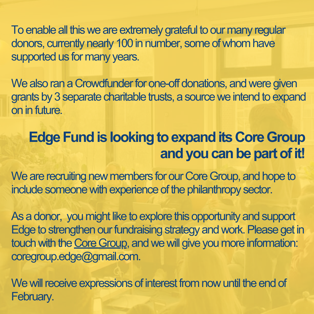 At Edge we have identified the need to expand our Core Group with two roles dedicated specifically to improving our work in Fundraising and Communications.