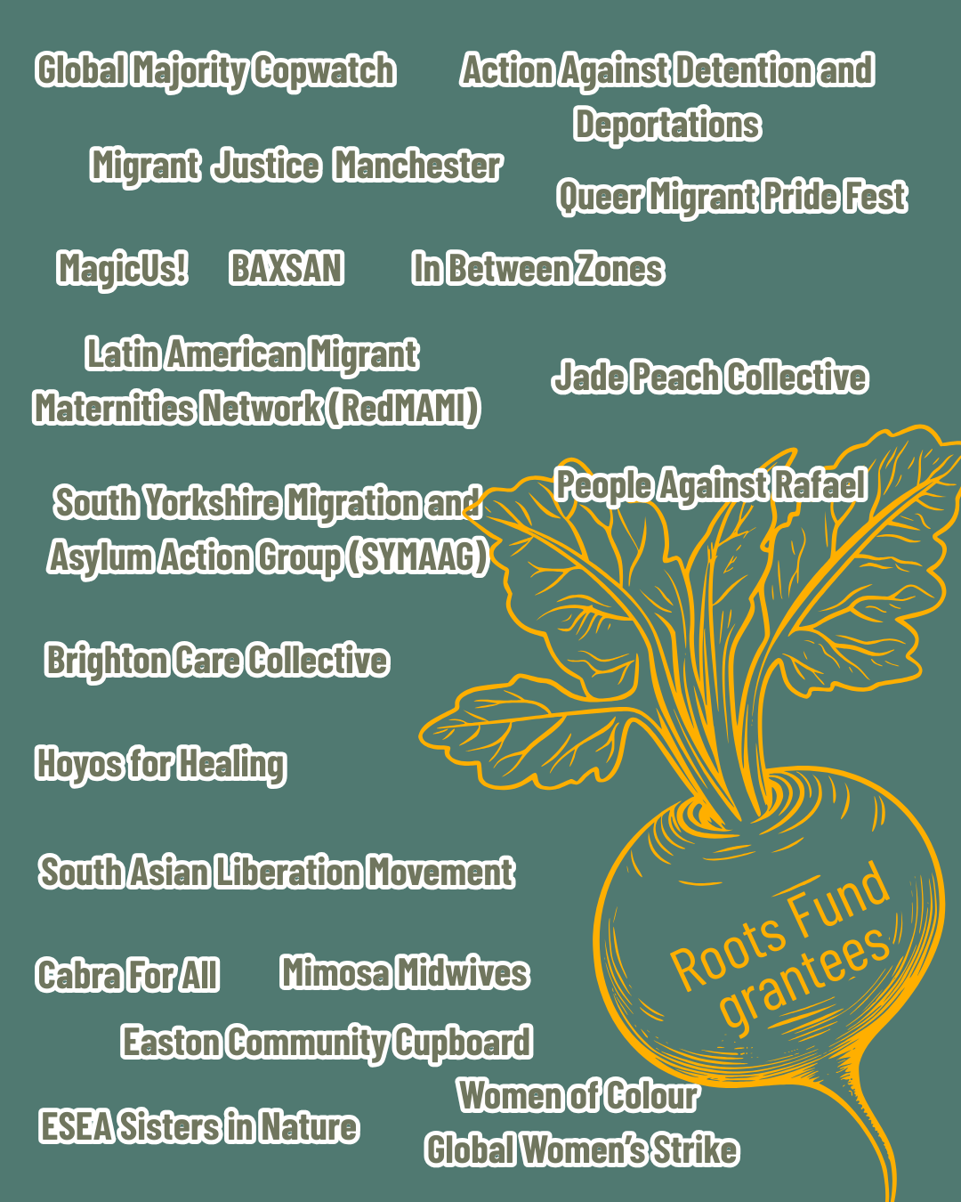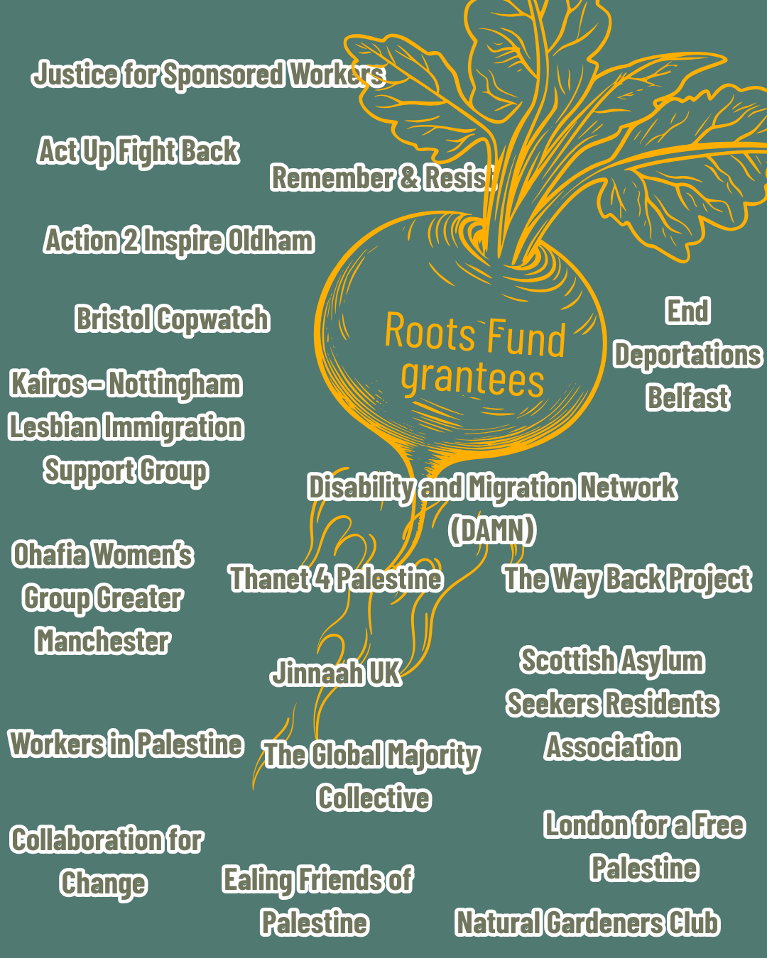 After receiving 100 applications from incredible rad groups all around the UK and Ireland, 40 groups were selected for funding. Six grassroots groups were part of the Roots Fund Working Group which for 1-2 months of meetings worked collectively to decide on the final list.
